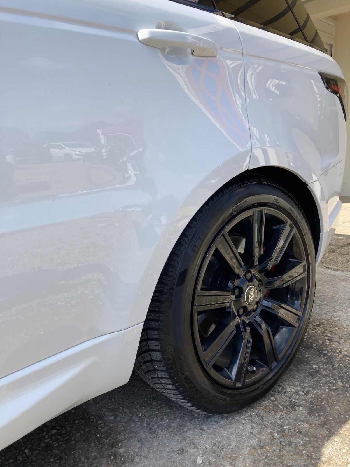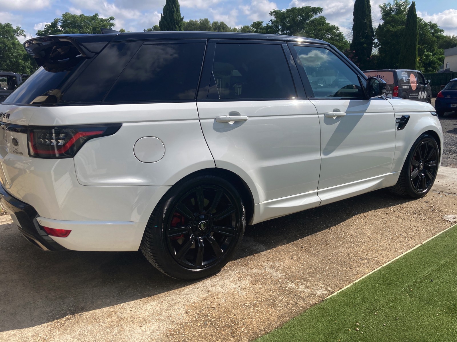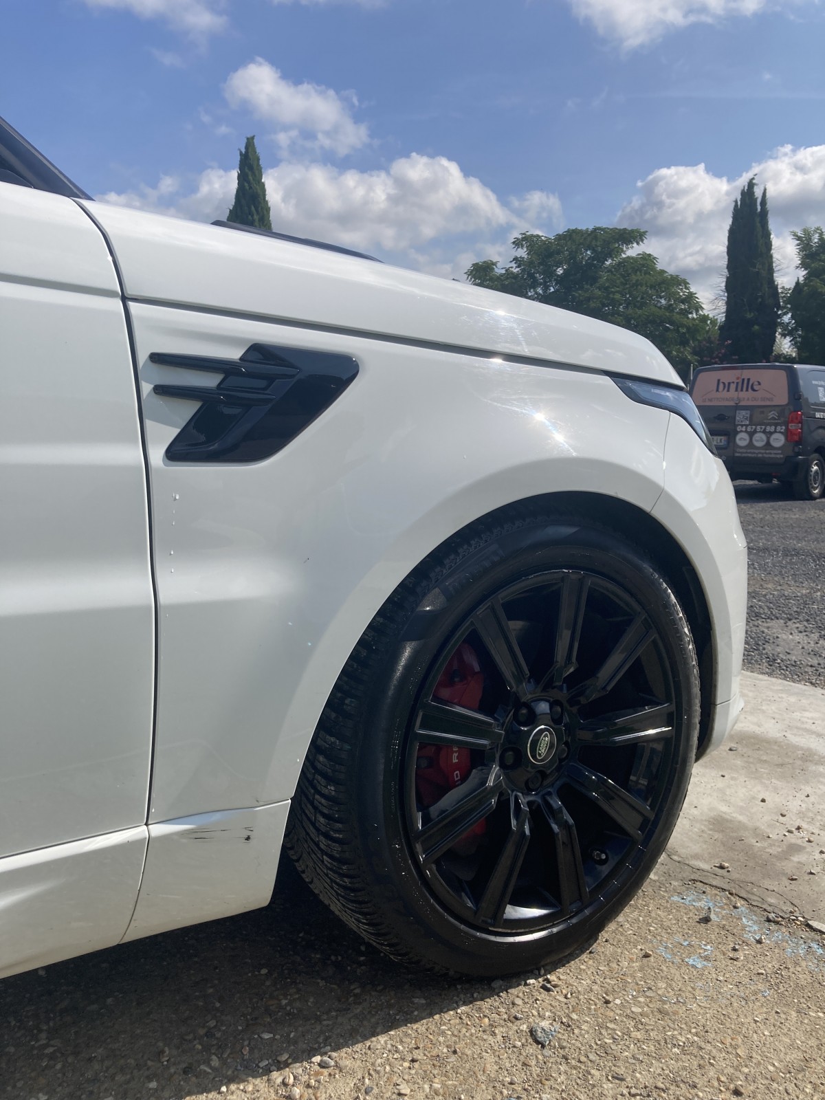 Nettoyage à nos bureaux de Montferrier sur lez dans l herault d un superbe range sport hybride dans sa livrée blanc nacrée .