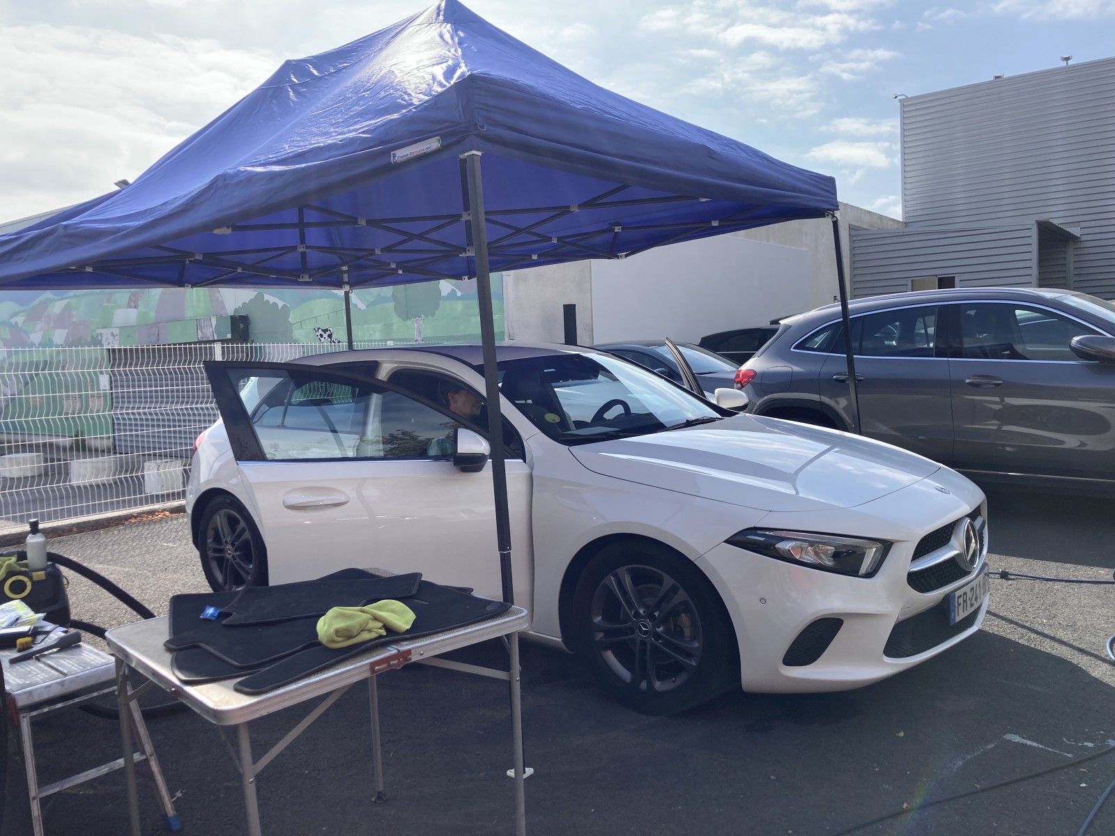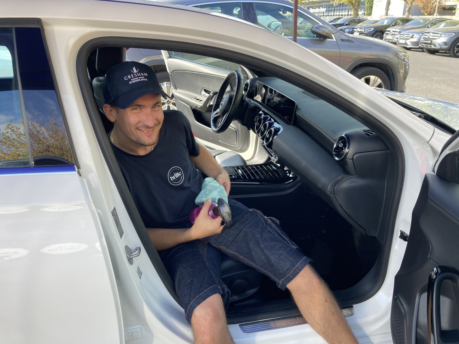 Nouveau partenariat avec Mercedes benz Montpellier pour la préparation des véhicules avant la vente et la réception des clients . L occasion pour les salariés de brille de montrer que le handicap gravir des montagnes à Castelnau le lez dans l Herault . Nettoyage intérieur et extérieur avec beaucoup d amour